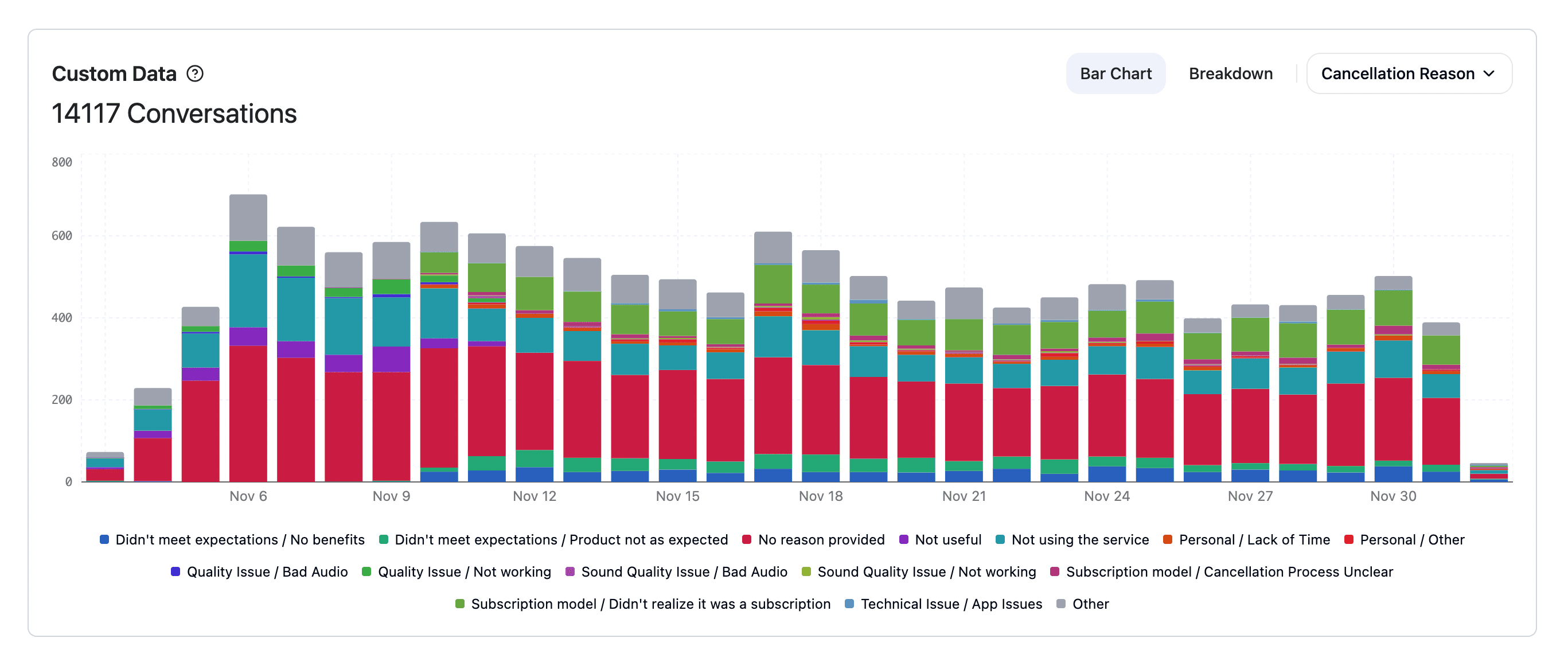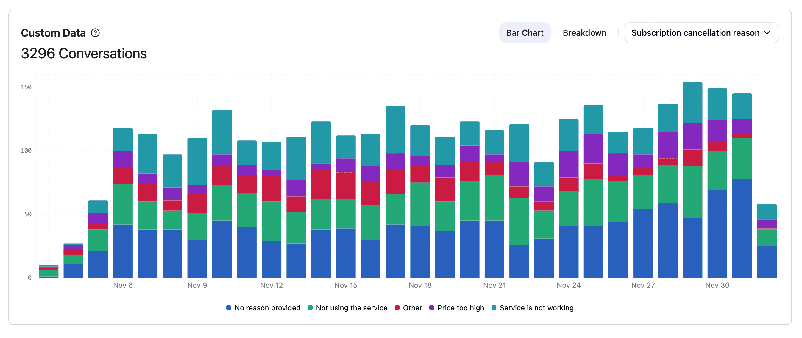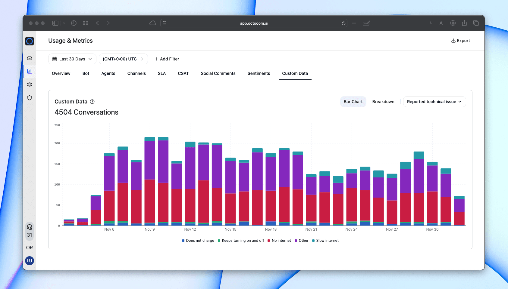 - Filter conversations by any collected field for deeper analysis