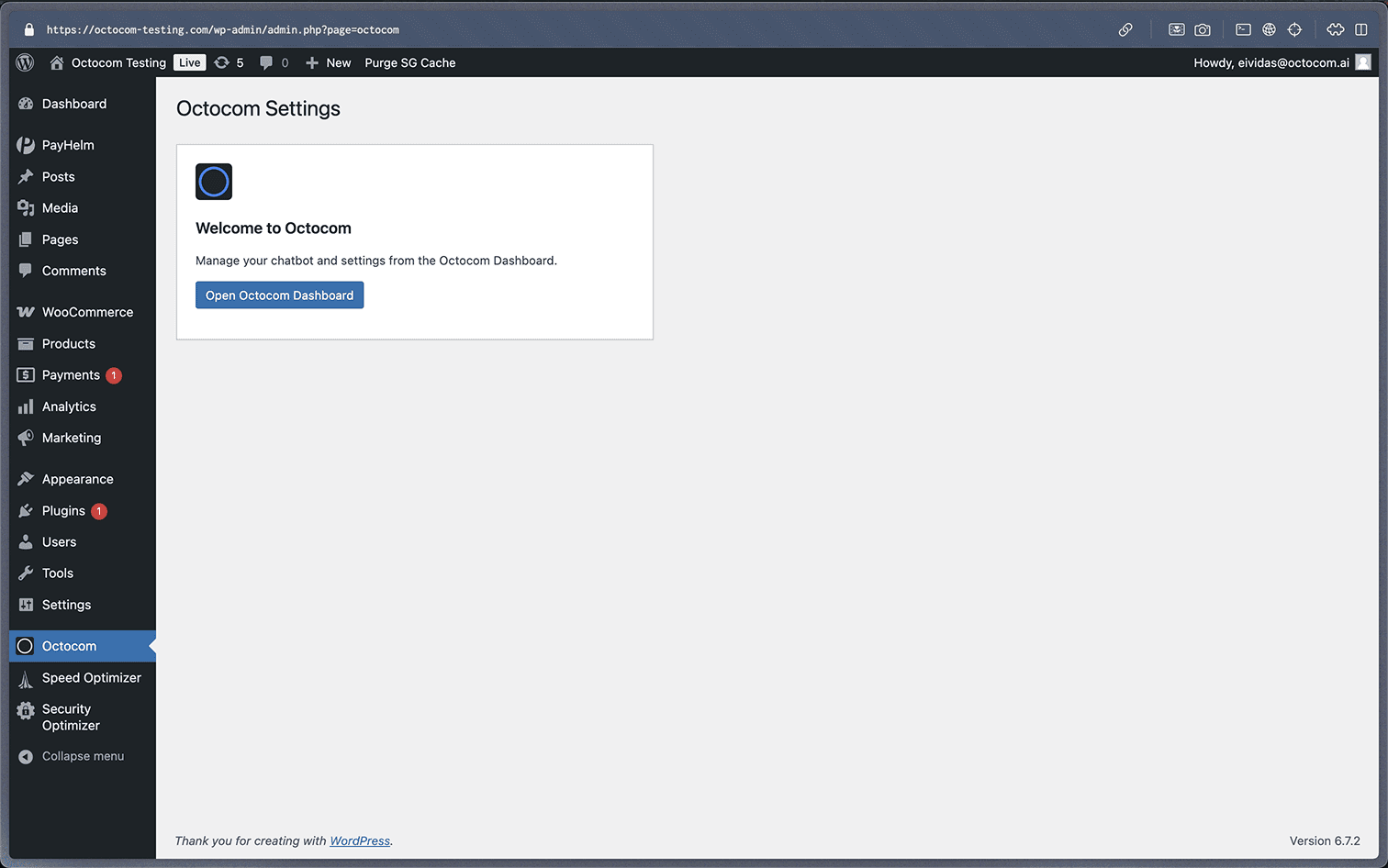 - Navigate back to your WooCommerce admin, then select Octocom in the left-side menu.